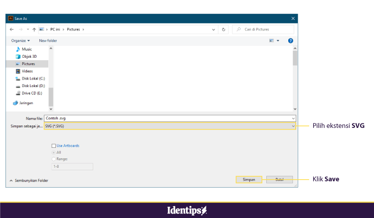 Halo selamat datang di Identips! Sebelumnya saya sudah pernah membahas SVG: Scalable Vector Graphic. Pada artikel ini saya akan membahas cara membuat gambar SVG (Scalable Vector Graphic) menggunakan software desain grafis.