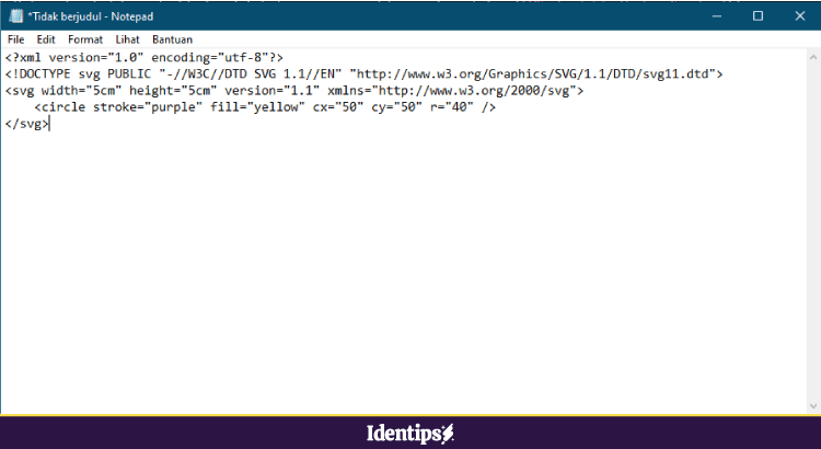 Halo selamat datang di Identips! Sebelumnya saya sudah pernah membahas SVG: Scalable Vector Graphic. Pada artikel ini saya akan membahas cara membuat gambar SVG (Scalable Vector Graphic) menggunakan text editor.