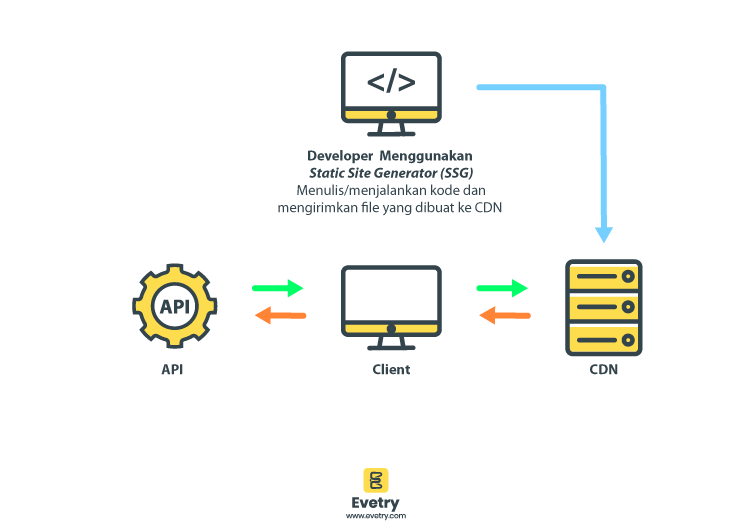 Halo, selamat datang di Evetry! Pada postingan sebelumnya saya telah membahas Situs Web Statis dan Dinamis, jika kamu belum membaca postingan tersebut sebaiknya kamu membacanya terlebih dahulu, karena postingan tersebut berhubungan dengan apa yang akan kita bahas kali ini yaitu JAMstack.