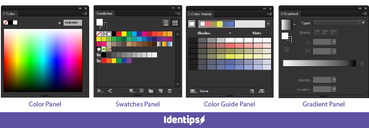 Salah satu hal yang menarik menurut saya di Adobe Illustrator adalah karena banyaknya panel yang dapat digunakan untuk pewarnaan seperti Color Panel, Swatches Panel, Color Guide Panel dan Gradient Panel. Panel tersebut memiliki fungsi yang sama, yanitu sebagai palet warna namun ada keunikan tersendiri yang dimiliki oleh panel-panel tersebut.