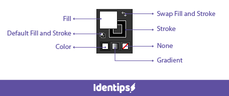 ada dua bagian penting pada tool pewarnaan di toolsbar yaitu Fill (Warna isi) dan Stroke (Warna garis pinggir). Sebelum mewarnai sebuah objek kamu harus mengaktifkan Fill atau Stroke terlebih dahulu dengan cara melakukan klik pada Fill atau Stroke atau menggunaka Shortcut ' X '. Untuk mengetahui Fill atau Stroke aktif, kamu dapat melihat apabila Fill berada diatas Stroke itu artinya Fill sedang aktif dan sebaliknya, apabila Stroke berada di atas Fill, maka itu artinya Stroke sedang aktif.