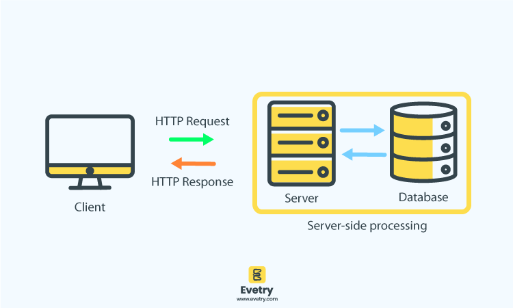Sebelum membahas perbedaan lebih lanjut dari kedua jenis situs web ini, kita harus memahami bagaimana cara kerja internet untuk situs web terlebih dahulu. Komunikasi internet melibatkan server dan browser web (client). Untuk membuat koneksi antara keduanya, digunakan protokol jaringan lapisan aplikasi (application layer) yang disebut Hypertext Transfer Protocol (HTTP). Contoh sederhananya, saat kamu mengetik URL di browser, maka browser akan mengirimkan permintaan HTTP ke server dan server akan mengidentifikasi file yang diminta kemudian mengirimkannya kembali ke browser kamu melalui respons HTTP bersamaan dengan halaman web yang diminta dalam bentuk HTML.
